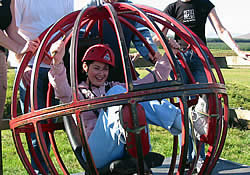 One player climbs into the ball. He or she is then